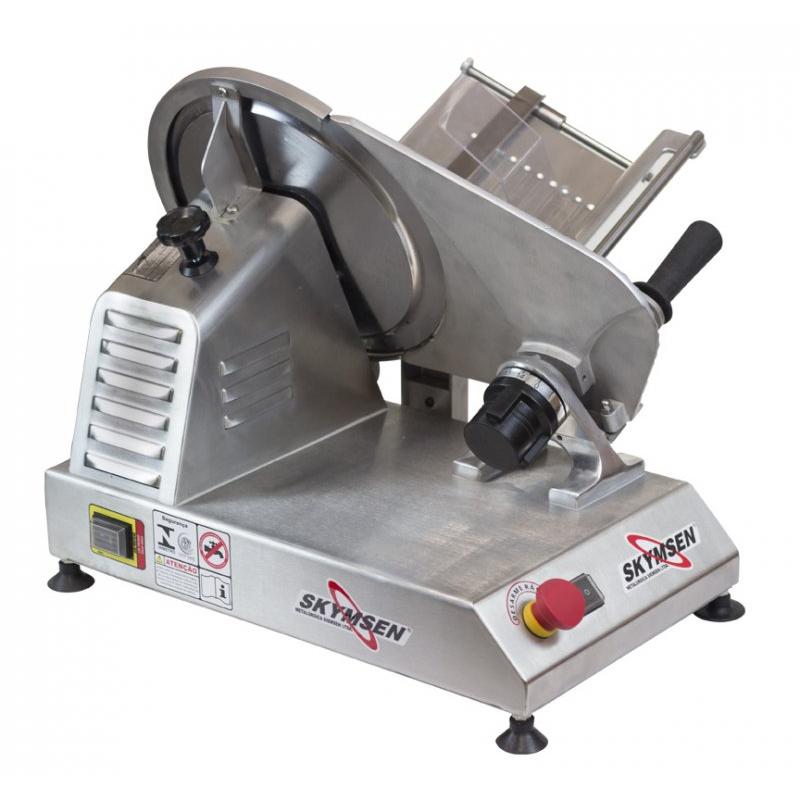 Cortador de Frios inclinado, semi automático;Produto em conformidade com a NR-12 e INMETRO;Base da máquina em aço inox, com deslizamento suave da mesa de corte,