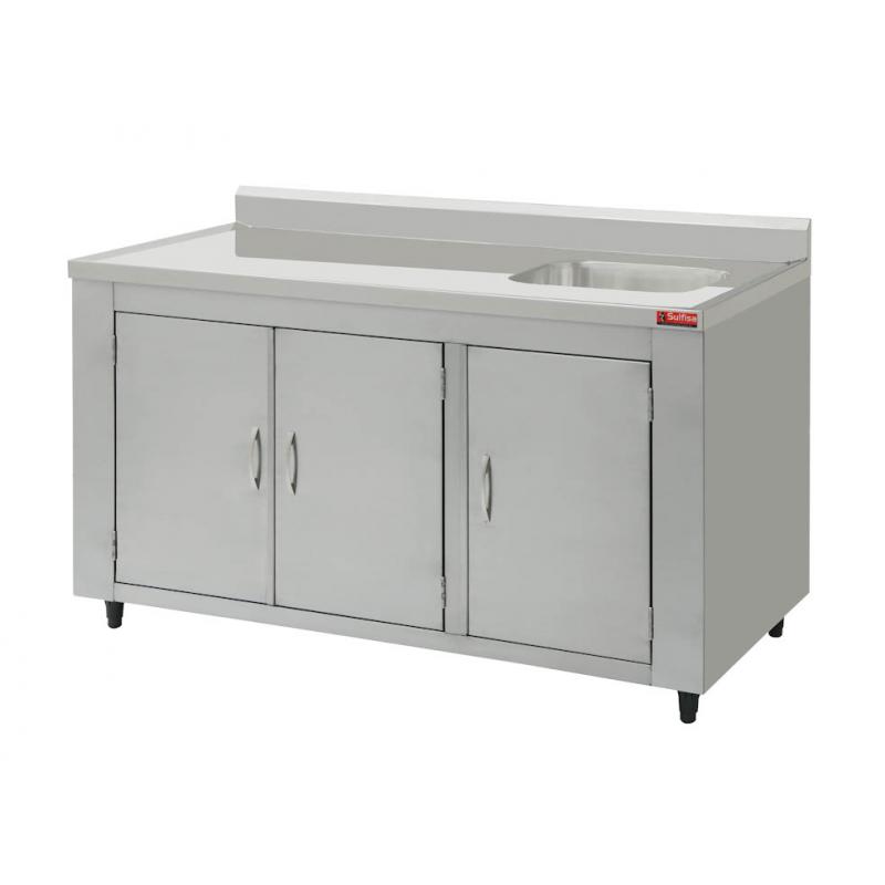 Corpo construído em aço inox AISI 430 ou 304, tampo em aço inox AISI 304 com cuba 400x340x180mm com furo para valvula americana de 3.1/2", prateleiras internaslisas com regulagem de altura,pés com sapatas niveladoras em polietileno.