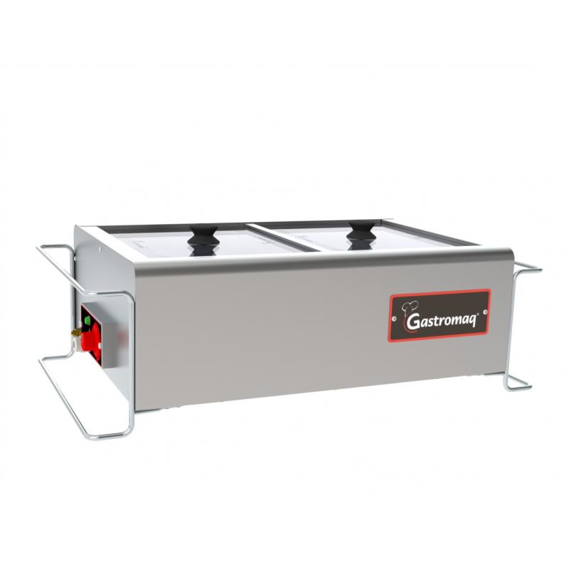 Balcão Térmico fabricado com tanque estancado para Banho Maria em Aço Inox 430 e externamente com aço Inox 430 Escovado com dreno d'água. Disponíveis com 2 e 3 cubas em aço inox, com tampas em inox (modelo standart) ou de vidro basculante (modelo super luxo), aquecido com resistência tubular em aço Inox 304 e controlado pelo termostato 20°C à 120°C. Lâmpada Piloto para controle do aquecimento. Suspenso por aramados cromados. Disponíveis com ligação 110v ou 220v. Indicado para restaurantes em geral.