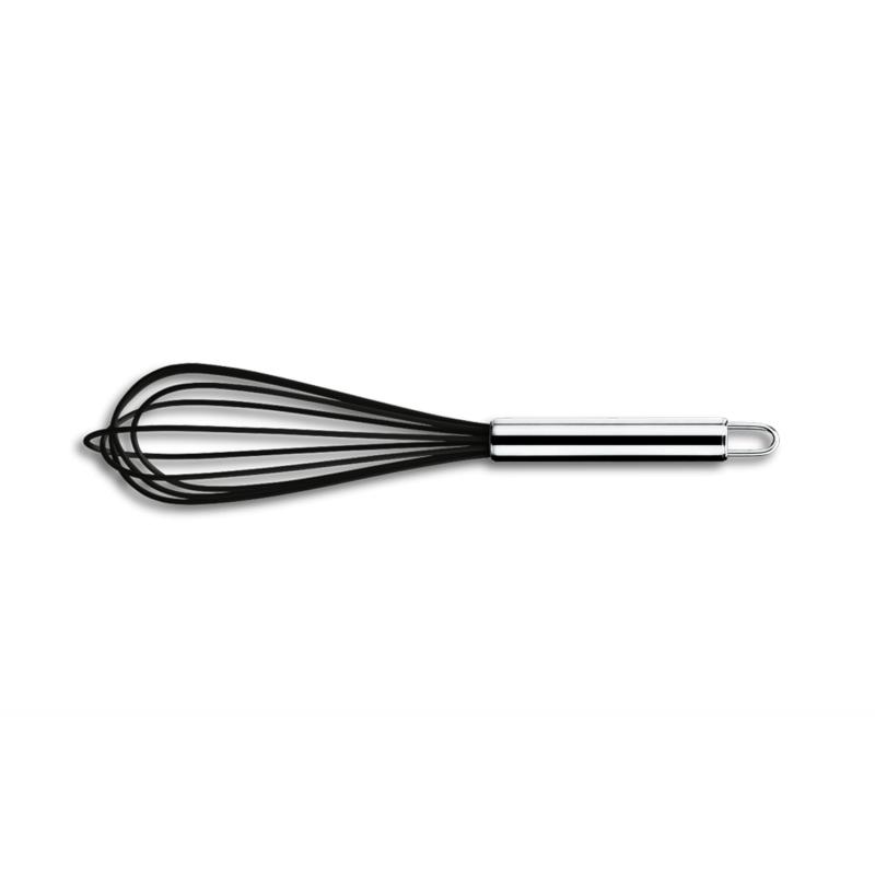 Os cozinheiros mais exigentes utilizam e aprovam: utensílios que reúnem aço inox e silicone são perfeitos para qualquer tipo de alimento e recipientes. Além da resistência e facilidade de limpar próprias do aço inox, estes objetos apresentam a flexibilidade e leveza do silicone, que não danifica as superfícies. O batedor manual com fios de silicone da Brinox foi especialmente desenhado para o preparo de claras em neve, maionese e bolos. Seu cabo em aço inox possui uma alça que lhe permite pendurar a peça e mantê-la sempre à vista. O produto suporta temperaturas de até 220°C, tem 30cm de comprmento e está disponível nas cores preto ou vermelho.