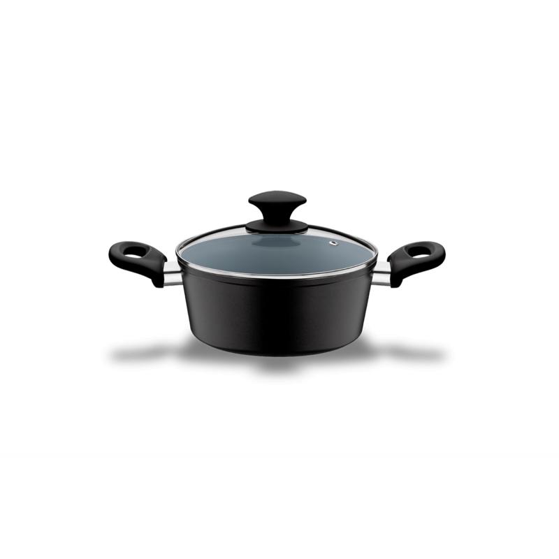 A caçarola é a peça de cozinha ideal para risotos, estrogonofes e molhos desde o fogão até o momento de servir, pois as duas alças facilitam o transporte e não ocupam espaço à mesa. Parte da linha Ceramic Life 4.5, ela é produzida em alumínio 4.5mm, o melhor da categoria para absorver o calor lentamente e conservá-lo por mais tempo, permitindo um cozimento uniforme dos alimentos e economizando energia. Na parte interna, o revestimento cerâmico não libera elementos químicos no uso e ainda é antiaderente, o que requer menos óleo no preparo das refeições e propicia uma limpeza mais fácil. As alças em baquelite têm revestimento Soft-Touch, macio e antitérmico. A tampa conta com saída para o vapor e vidros temperados, para espiar a comida sem prejudicar o cozimento. Além de tudo, o design arredondado e a pintura siliconada fica linda à mesa. Nesta versão, a caçarola tem 20x9,5cm, capacidade de 2,1 litros e a cor é preta.