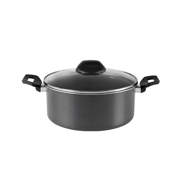 Prática e segura, a caçarola da linha Garlic, de 22x10cm com capacidade de 3,4 litros, tem estrutura de alumínio que dissipa melhor o calor cozinhando o alimento por igual e mais rapidamente. Já o revestimento interno antiaderente não deixa o alimento grudar mesmo com uso reduzido de óleo. O material também facilita a limpeza. A tampa é de vidro temperado e possui saída para o vapor. Com cabos de braquelite, material que não aquece, o manuseio do utensílio fica mais fácil e seguro. A pintura externa é grafite.