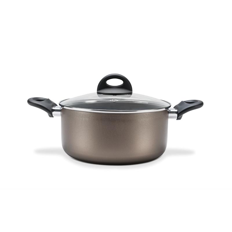 Prática e segura, a caçarola da linha Mint, com 20x10 cm e capacidade de 3,7 litros, tem estrutura de alumínio que dissipa melhor o calor, cozinhando o alimento por igual e mais rapidamente. Já o revestimento interno antiaderente não deixa o alimento grudar mesmo com uso reduzido de óleo. De quebra, o material também facilita a limpeza. A tampa é de vidro e possui saída para o vapor. Os cabos são em soft touch, facilitando o manuseio.A caçarola, que vem na cor fendi.