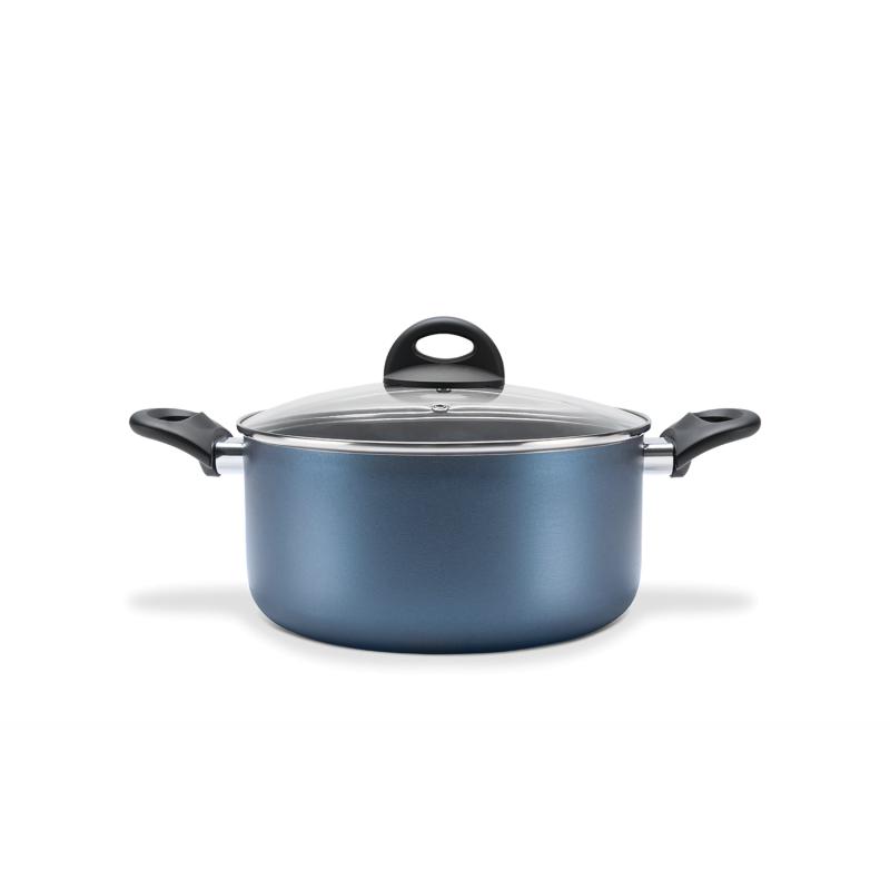 Prática e segura, a caçarola da linha Mint, com 24x11,5 cm e capacidade de 4,7 litros, tem estrutura de alumínio que dissipa melhor o calor, cozinhando o alimento por igual e mais rapidamente. Já o revestimento interno antiaderente não deixa o alimento grudar mesmo com uso reduzido de óleo. De quebra, o material também facilita a limpeza. A tampa é de vidro e possui saída para o vapor. Os cabos são em soft touch, facilitando o manuseio. A caçarola, que vem na cor cobalto.