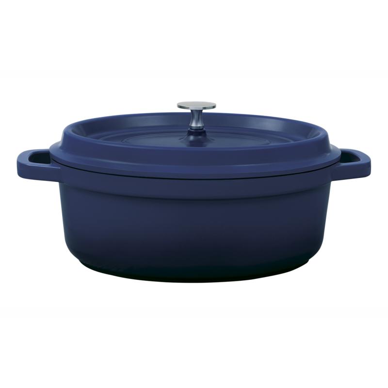Versatilidade e beleza com um toque retrô são as marcas das caçarolas da linha Grand Gourmet. Uma chapa de inox inoxidável no fundo possibilita o uso em fogões de indução, enquanto a estrutura toda metálica facilita que as receitas sejam levadas da boca do fogão ao forno em até 180ºC, como uma carne assada com batatinhas gratinadas, por exemplo. A tampa conta ainda com sistema pinga gotas, que permite que o vapor d?água retorne ao alimento, preservando os nutrientes e o sabor. Como todos os produtos da Família Alumini, a proteção antiaderente Pro-Flon Premium permite o preparo de alimentos com menos óleo e facilita a limpeza. A caçarola é oval e está disponível na cor azul. Suas dimensões são 31x25x12 cm e capacidade de 6 litros.