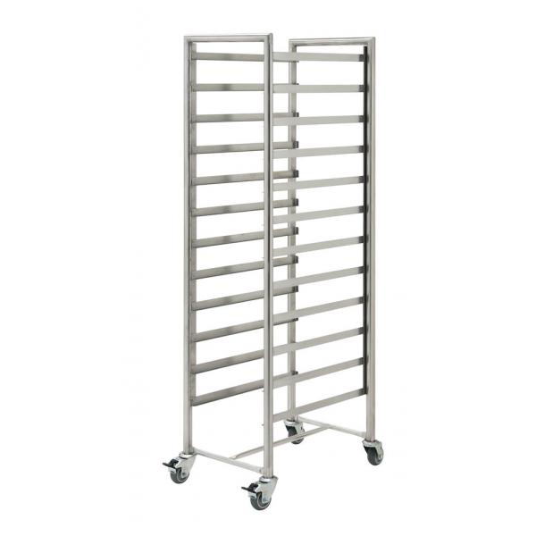 Construído inteiramente em Aço Inox AISI 304 ou 430, estrutura tubularcom rodízios de 3" sendo 2 com freio e 2 sem freio. (Não acompanha as cubas)