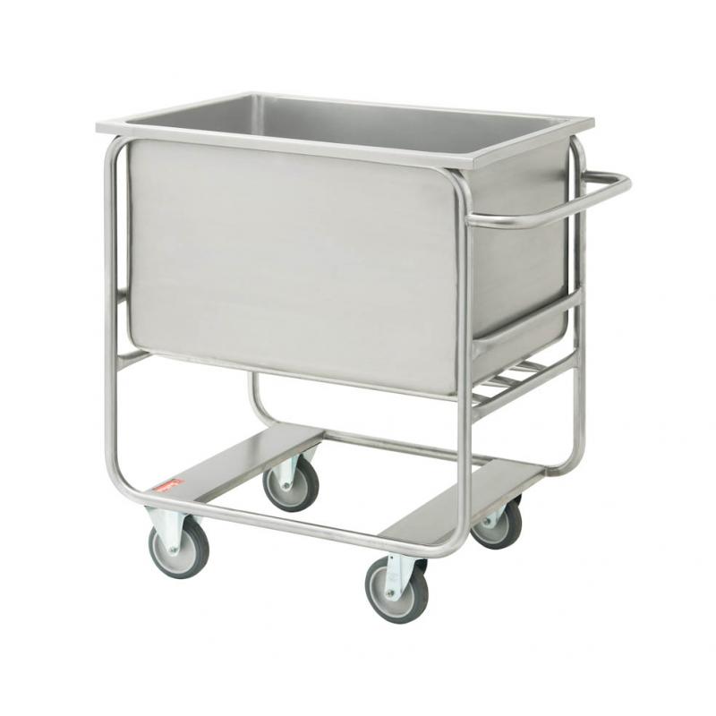 Esqueleto construído inteiramente em aço inox AISI 304, equipado com 4 rodízios de 5" sendo 2 fixos egiratórios.
