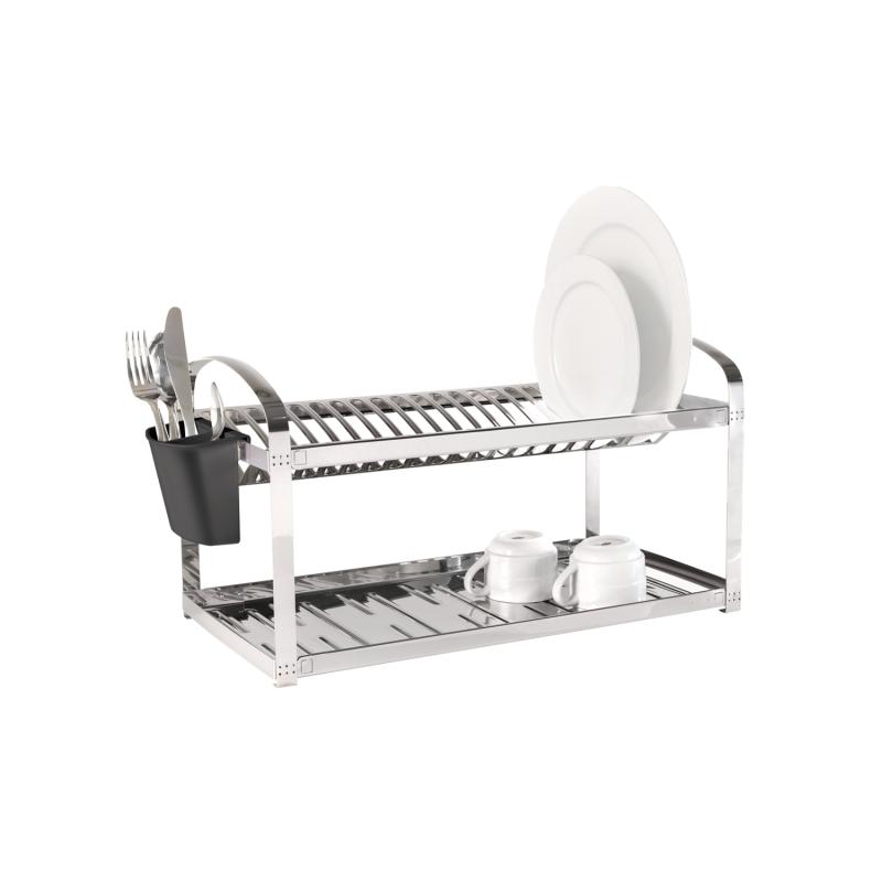Toda a sua louça tem lugar garantido e a sua cozinha fica muito mais organizada. O escorredor de pratos Inox da linha Suprema possui uma parte superior, perfeita para pratos de diferentes tamanhos e uma base reta especialmente desenhada para acomodar com segurança copos, xícaras e demais itens. O produto inclui, ainda, um porta-talheres em plástico que pode ser facilmente encaixado no corpo do escorredor. O modelo é totalmente feito em aço inox, o que o torna muito resistente e fácil de limpar. Além de durável, o escorredor de pratos Inox da linha Suprema tem acabamento alto brilho e design arrojado, que adiciona requinte à sua decoração. A peça está disponível em três tamanhos: 12 pratos (31x27x28,5cm), 16 pratos (40x27x28,5cm) e 20 pratos (49x27x28,5cm).Este na versão montável.