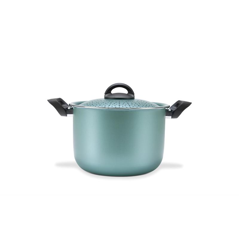 Preparar uma macarronada para toda a família fica muito mais fácil com a espagueteira da linha Chilli. O revestimento interno impede as omeletes de grudarem mesmo com uso reduzido de óleo. O material também facilita a limpeza. Sua segurança está garantida com o cabo de baquelite que não aquece. A espagueteira da linha Chilli está disponível na cor turquesa.