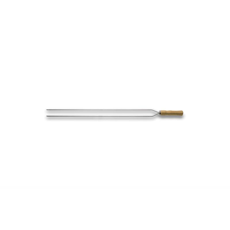 Você pode gostar de costela, picanha, vazio, sobrecoxa de frango ou lombinho de porco ? não importa para qual tipo ou corte de carne, a escolha do espeto é muito importante. O espeto duplo da linha Churrasco é feito em aço inox, um material resistente e fácil de limpar. Além disso, o produto possui cabo em madeira, o que minimiza os riscos de queimaduras e garante a sua segurança. O produto está disponível em três tamanhos: 50cm, 60cm, 70cm. Um deles, com certeza será ideal para a sua churrasqueira.