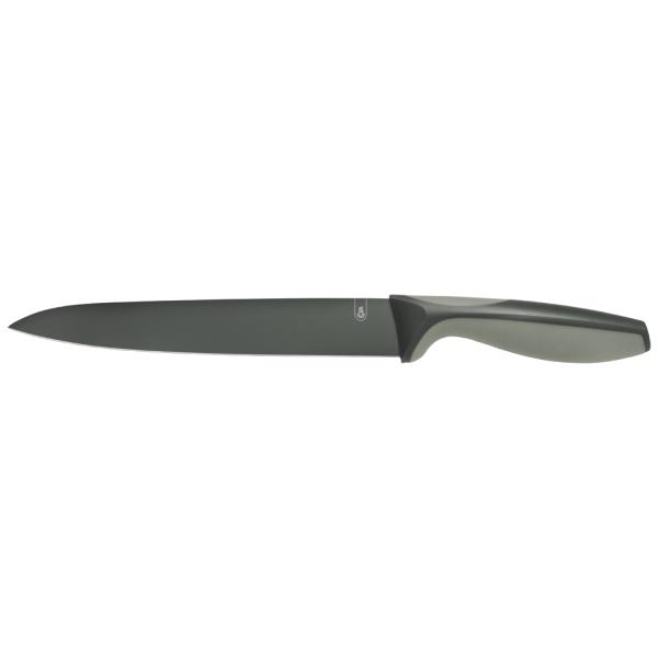 Todo cozinheiro sabe que uma boa faca desenhada especialmente para sua função faz toda a diferença na hora de preparar uma receita. A Faca 8? Fatiar é perfeita para cortar e picar os mais diferentes ingredientes das receitas. A lâmina alia a alta durabilidade do aço inoxidável e o revestimento antiaderente, que não gruda e é mais fácil de limpar. O cabo é revestido com Soft-Touch, agregando conforto e suavidade para o manuseio. Para combinar com a sua decoração, a faca para fatiar está disponível nas cores cinza ou laranja.