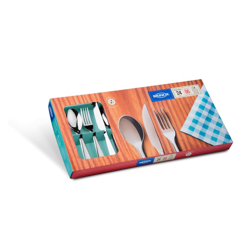 Para um toque especial à mesa, a linha de talheres Bellagio foi desenvolvida com design de traços suaves e delicados. A estrutura e os cabos em aço inox polido tornam as peças altamente durável e resistente, não correndo risco de oxidar e podendo inclusive ir á máquina de lavar louça. Na versão com 24 peças, o faqueiro contém os utensílios básicos de uma mesa para seis pessoas: garfos e colheres de mesa, facas de churrasco e colheres de chá.