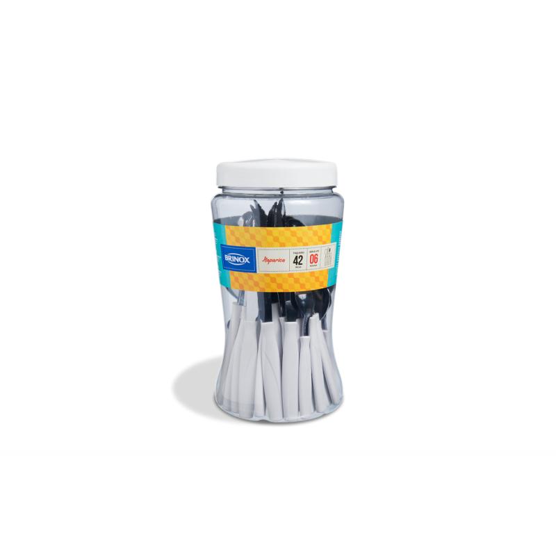 Colorida e informal, a linha Itaparica é perfeita para alegrar a sua mesa no dia-a-dia sem perder em qualidade e beleza. Feitas de aço inox polido e cabo em prolipropileno, as peçam podem ir à máquina de lavar. As facas são temperadas, não danificando pratos de porcelana. Este faqueiro de 42 peças serve refeições para até seis pessoas, contendo garfos e colheres de mesa, facas de churrasco, garfos, colheres e facas de sobremesa e colheres de chá. Para combinar com a decoração da sua cozinha, o talher está disponível em cinco cores: além de azul, em branco, preto, verde e vermelho.