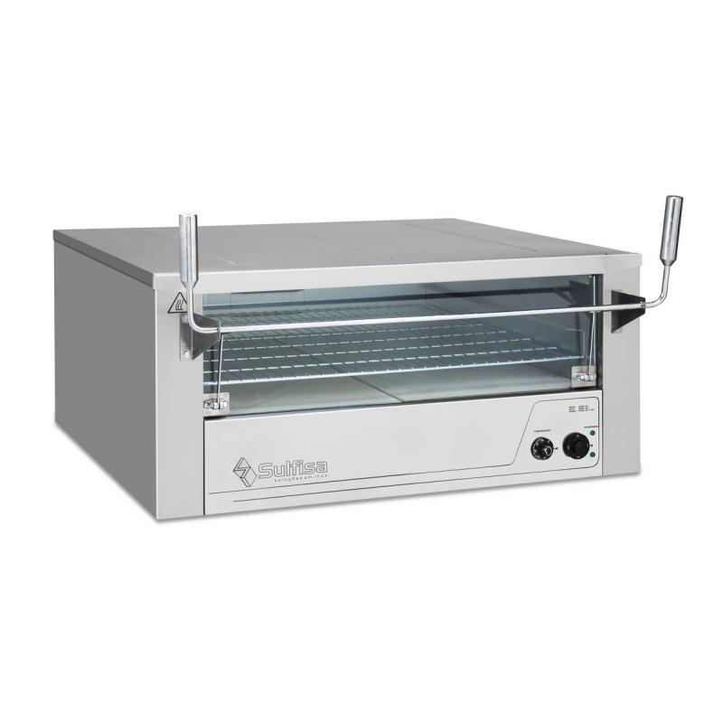 Construído em aço inoxidável AISI 430 com acabamento escovado, lastro com placas refratárias e paredes revestidas com isolamento térmico, vidro temperado, equipado com resistência superior e inferior com controle individual,led indicador de operação e termostato para controle de temperatura. Grade interna aramada e reforçada.Todos os fornos acompanham cavalete inferior desmontável.