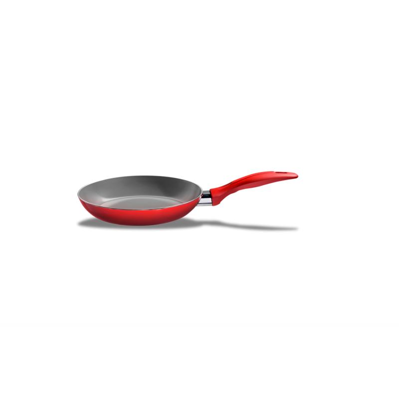 Frituras não precisam mais ser sinônimo de óleo na comida. A frigideira da linha Ceramic Life 2.5 conta com revestimento cerâmico, que além de requerer o mínimo de óleo no preparo das refeições por ser antiaderente, também não libera elementos químicos no uso, além de ser super fácil de lavar. A temperatura alta é garantida pelo alumínio 2.5 mm, que absorve o calor lentamente, permitindo um cozimento uniforme dos alimentos e economizando energia. O cabo em baquelite têm revestimento Soft-Touch, macio e antitérmico, que permite o manuseio seguro e confortável. Nesta versão de tamanho pequeno, ideal para fritar ovos, a frigideira tem 20x3,5cm, capacidade para 0,6 litro e a pintura siliconada externa é na cor vermelha.