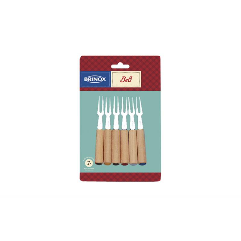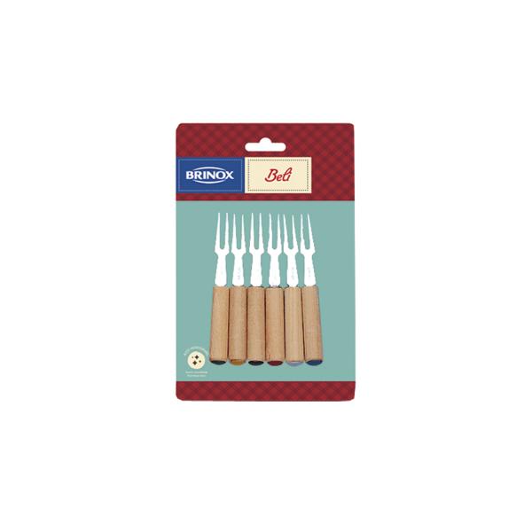 Queijos, salames, iscas e outras delícias que transformam qualquer fim de tarde em um legítimo happy hour podem e devem ser servidos com os garfinhos para petiscos da linha Beli. As peças possuem dentes pontiagudos, que simplificam a coleta diversos tipos de alimentos. Seus cabos em madeira são sofisiticados e possuem as extremidades de diferentes cores, o que lhe permite designar um garfinho para cada quitute e evitar misturas. As lâminas em aço inox são resistentes e fáceis de limpar. O kit inclui 06 garfinhos para petiscos.