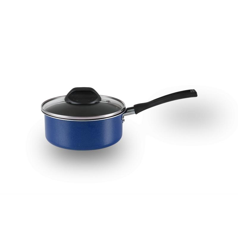Prática e segura, a panela da linha Garlic, com 18x8 cm e capacidade de 1,75 litro, tem estrutura de alumínio que dissipa melhor o calor, cozinhando o alimento por igual e mais rapidamente. Já o revestimento interno antiaderente não deixa o alimento grudar mesmo com uso reduzido de óleo. De quebra, o material também facilita a limpeza. A tampa é de vidro temperado e possui saída para o vapor. Com cabo de braquelite, material que não aquece, o manuseio da panela, fica mais fácil e seguro. A pintura externa é na cor azul.