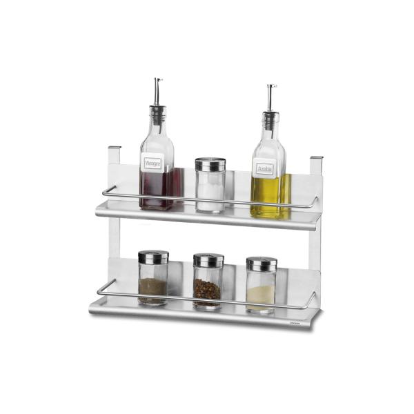 O Suporte Spazio é um produto 100% Aço Inox, resistente e durável. Prático, vem com duas bandejas, que deixam os condimentos ao alcance das mãos. Seu acabamento fosco dá um toque arrojado à cozinha.