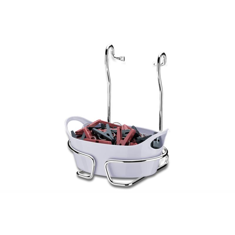 O Suporte é de Aço Cromado, com acabamento em fio redondo. Muito prático, deixa os prendedores de roupas ao alcance das mãos. O produto vêm com kit instalação composto por duas buchas e dois parafusos. Pode ser fixado diretamente na parede ou usado com a Barra de Aço Inox Brinox. Um toque de organização a sua lavanderia!