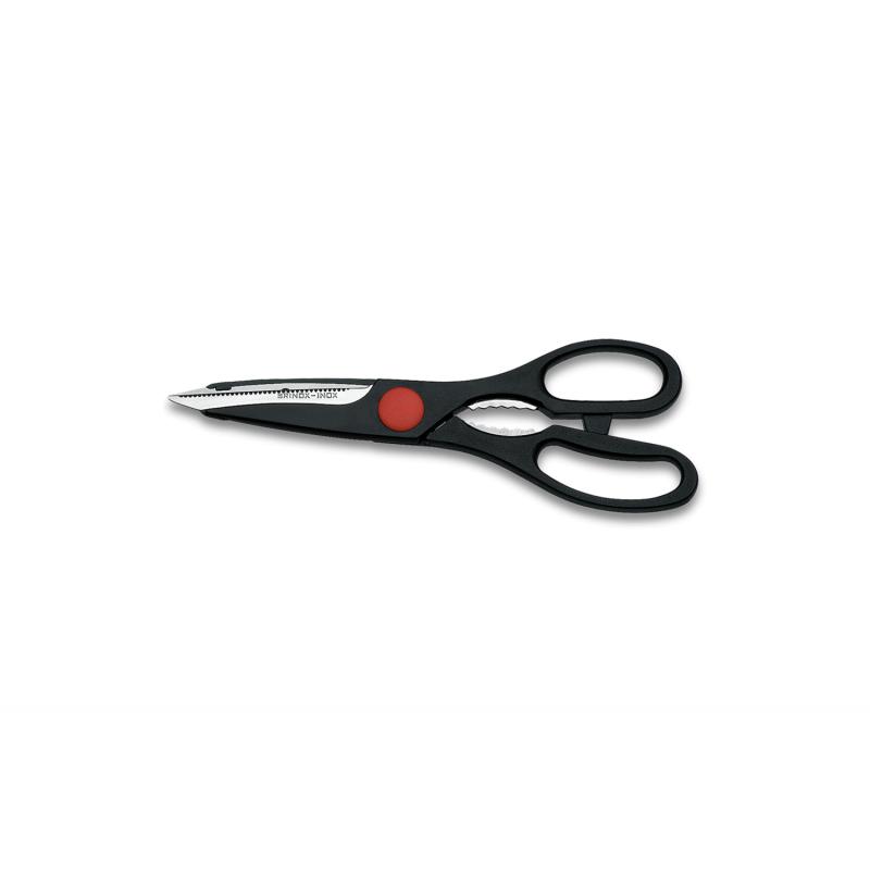 Corte vegetais, legumes, peixes e embalagens de forma rápida e segura. Ainda por cima, quebre nozes. Essas são algumas das soluções proporcionadas pela tesoura para cozinha Brinox. Suas lâminas em aço inox garantem precisão no corte, são fáceis de limpar e, principalmente, muito resistentes. O cabo em polipropileno torna o produto leve, macio e fácil de manusear. A tesoura para cozinha Brinox tem 19cm (7 ½?) de dimensão.