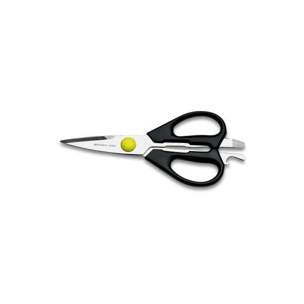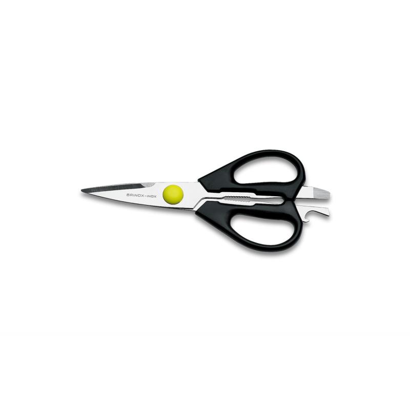 Corte vegetais, legumes, peixes e embalagens de forma rápida e segura. Ainda por cima, quebre nozes e destampe garrafas. Essas são algumas das soluções proporcionadas pela tesoura para cozinha Brinox. Suas lâminas em aço inox garantem precisão no corte, são fáceis de limpar e, principalmente, muito resistentes. O cabo em polipropileno torna o produto leve, macio e fácil de manusear. A tesoura para cozinha Brinox tem 21,5cm (8 ½?) de dimensão.