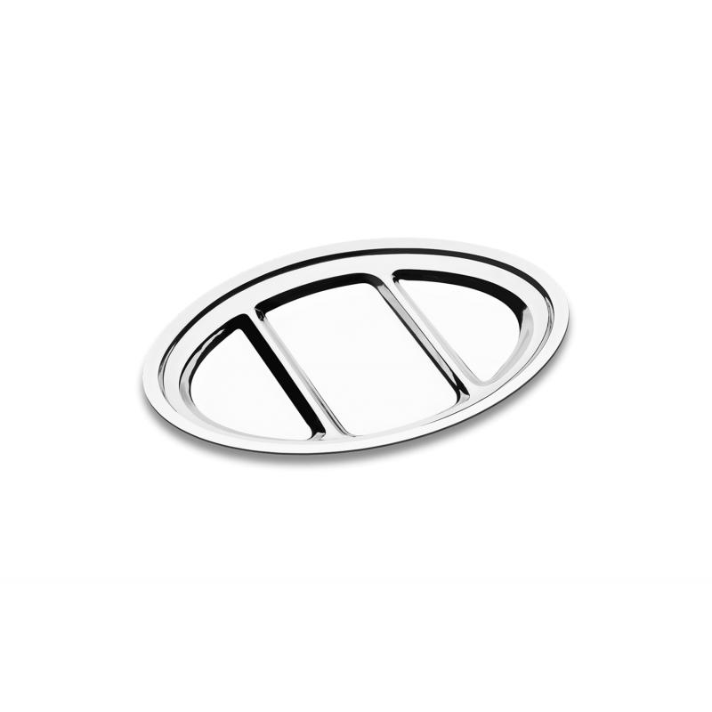 Aperitivos, saladas e petiscos ou pequenas porções de qualquer alimento têm lugar garantido e separado na travessa oval com divisórias da linha Parma. Inquebrável, o recipiente é feito em aço inox, um material fácil de limpar e que não altera o sabor e o aroma dos alimentos. Seu desenho clássico e suas linhas curvas se adaptam a qualquer decoração e evento e deixam a sua mesa muito mais bonita. O produto tem três divisórias e 35x25cm de dimensão.