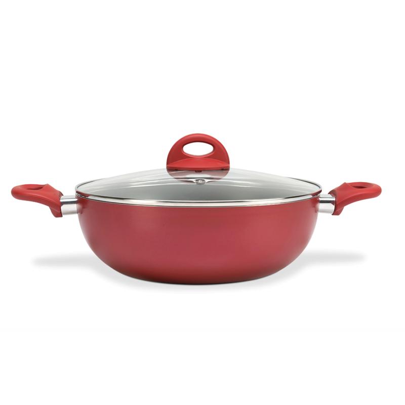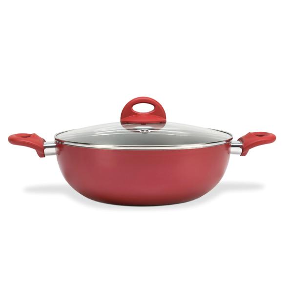 Perfeita para preparar pratos orientais, a wok, panela milenar, ganhou status de queridinha da cozinha moderna. O formato da wok permite um cozimento rápido, que preserva as propriedades dos alimentos, como os vegetais do yakissoba. Com a wok da linha Malagueta, cozinhar fica ainda mais fácil em razão da estrutura de alumínio da panela, que absorve o calor lentamente, garantindo o cozimento uniforme e economizando energia. O revestimento antiaderente requer menos óleo no preparo das refeições e é fácil de limpar. A tampa de vidro temperado com saída para o vapor permite que você acompanhe todo o processo. A cor da peça, cereja, dá o toque de modernidade na sua cozinha. O cabo e a alça soft touch não esquentam, facilitando o manuseio da peça. A wok da linha Malagueta tem 28 cm de diâmetro, capacidade para 4,1 litros.